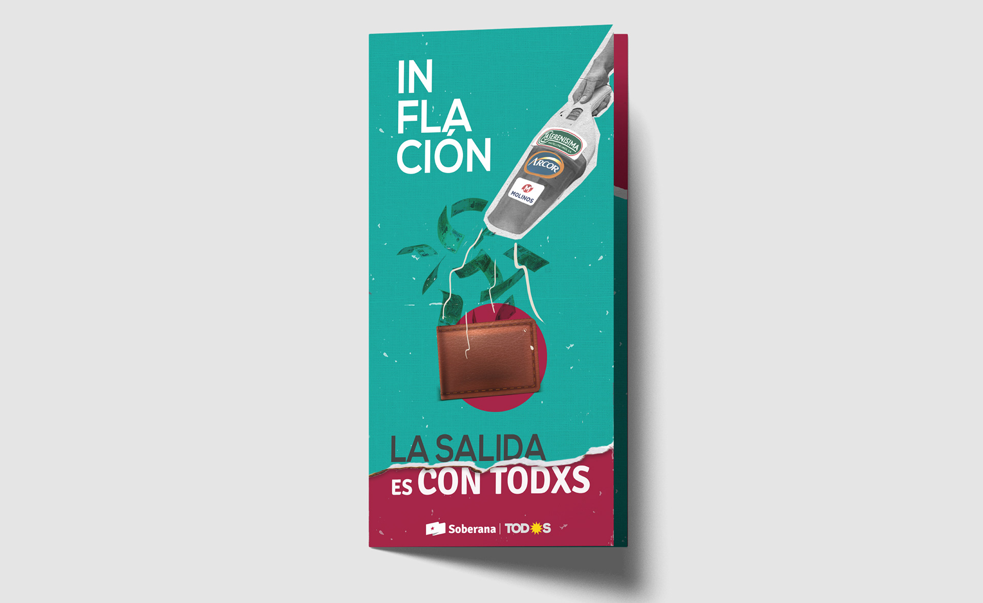 Tríptico diseñado para ser repartido en la vía pública. El diseño se basa en la simplicidad para informar de manera clara. Se combinan elementos gráficos y collages construir la simbología del volante. Su información se centra en el proceso de inflación de abril de 2022.